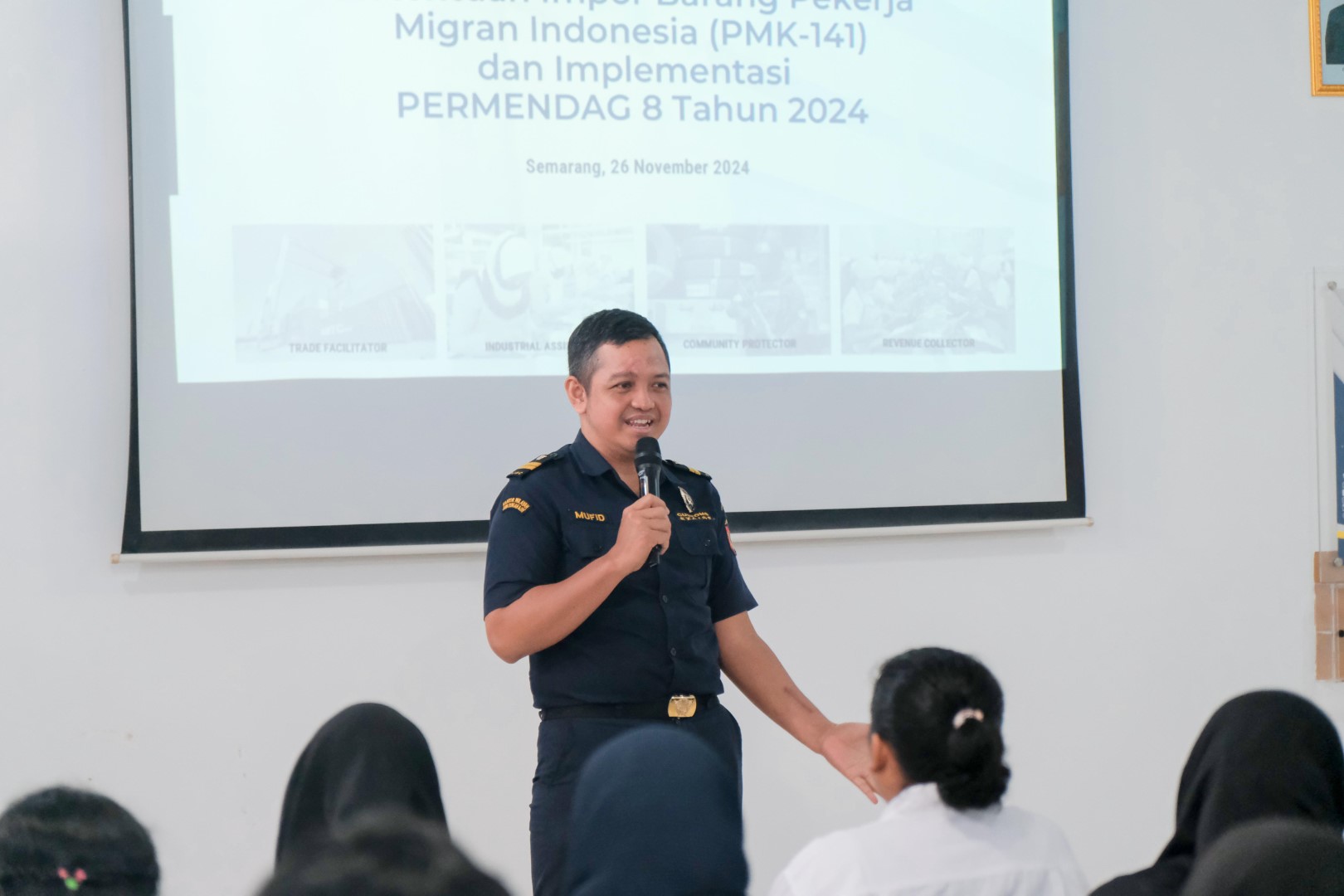 Bea Cukai Tanjung Emas menggelar sosialisasi kepada calon Pekerja Migran Indonesia (PMI) di Aula BP3MI Jawa Tengah (26/11). Kegiatan ini bertujuan untuk memberikan pemahaman terkait ketentuan barang kiriman, barang bawaan penumpang, serta proses registrasi IMEI, yang menjadi aspek penting bagi PMI yang berencana bekerja di luar negeri.