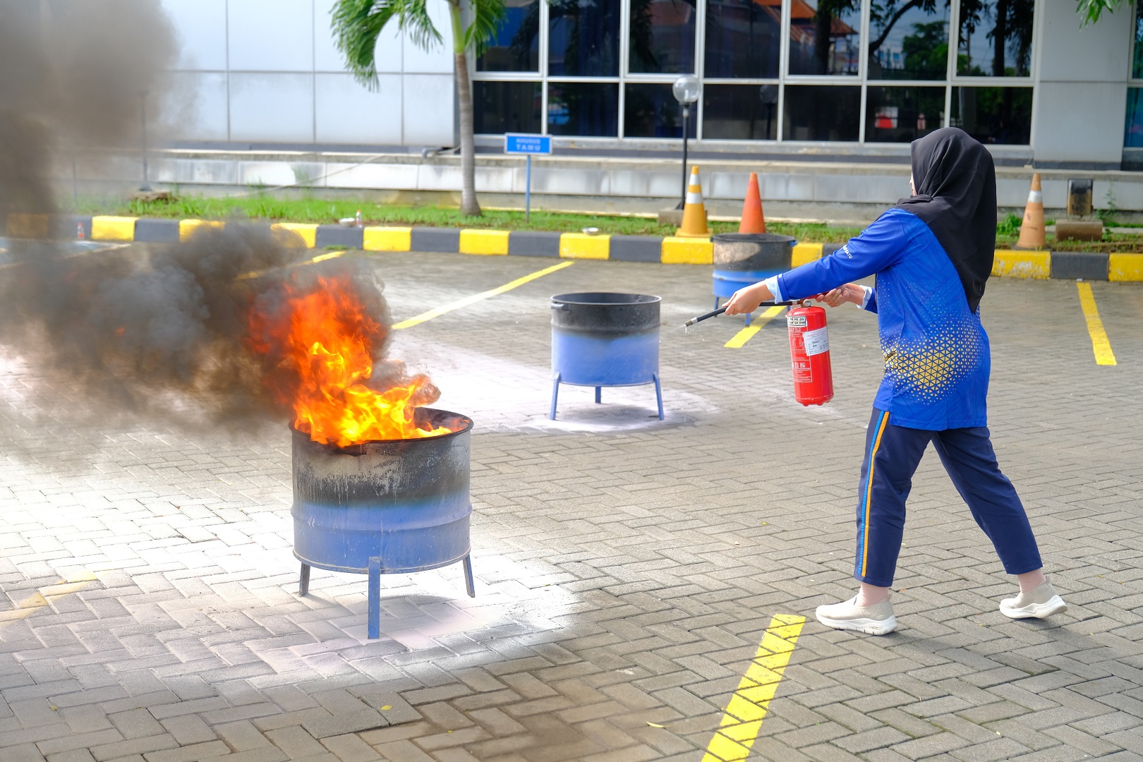 Pelatihan pemadam kebakaran menjadi inti dari kegiatan tersebut. Para pegawai diberikan pengetahuan mengenai penggunaan berbagai alat pemadam kebakaran, seperti APAR (Alat Pemadam Api Ringan) dan APAT (Alat Pemadam Api Tradisional) berupa karung goni basah. Salah satu sesi yang menarik adalah simulasi penanganan kebocoran gas LPG. Dalam simulasi tersebut, pegawai diajarkan langkah-langkah menutup katup gas dengan aman, menutupi kebocoran dengan kain basah, dan menyemprot api menggunakan APAR.