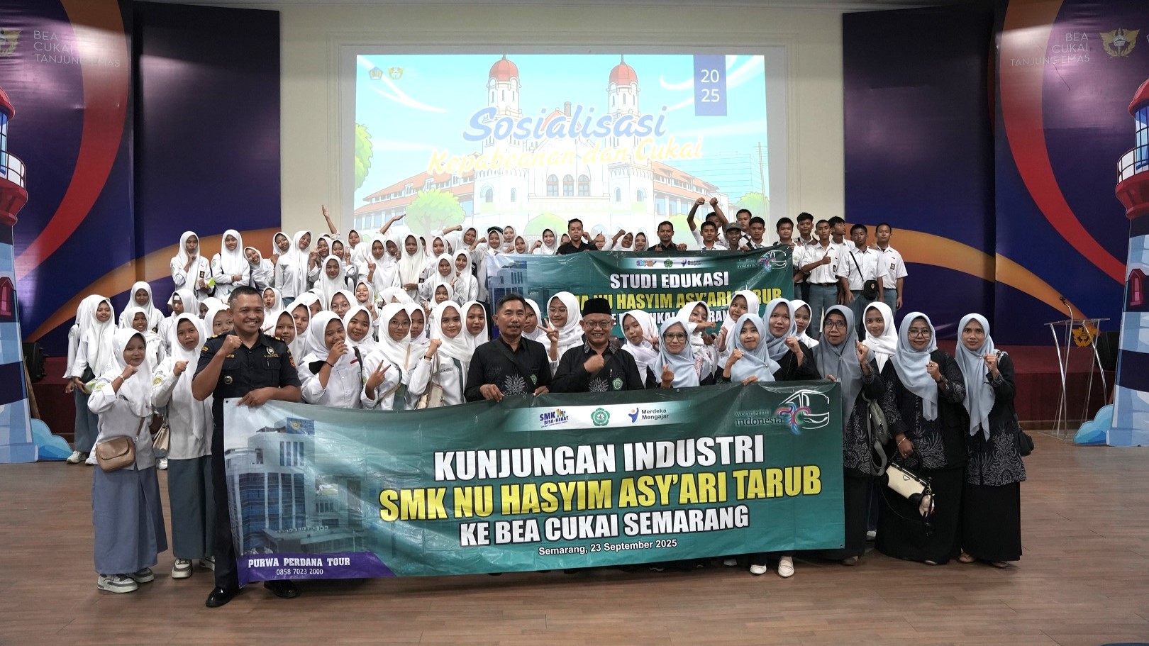 Semarang, 23 September 2025 – Kantor Bea Cukai Tanjung Emas menyambut rombongan siswa SMK NU Hasyim Asy’ari Tarub, Tegal, dalam agenda kunjungan industri yang berlangsung di Aula Lantai 3. Kegiatan ini dihadiri puluhan siswa beserta guru pendamping dan menjadi sarana edukasi langsung untuk mengenal lebih dekat peran Bea Cukai dalam mendukung perekonomian nasional.