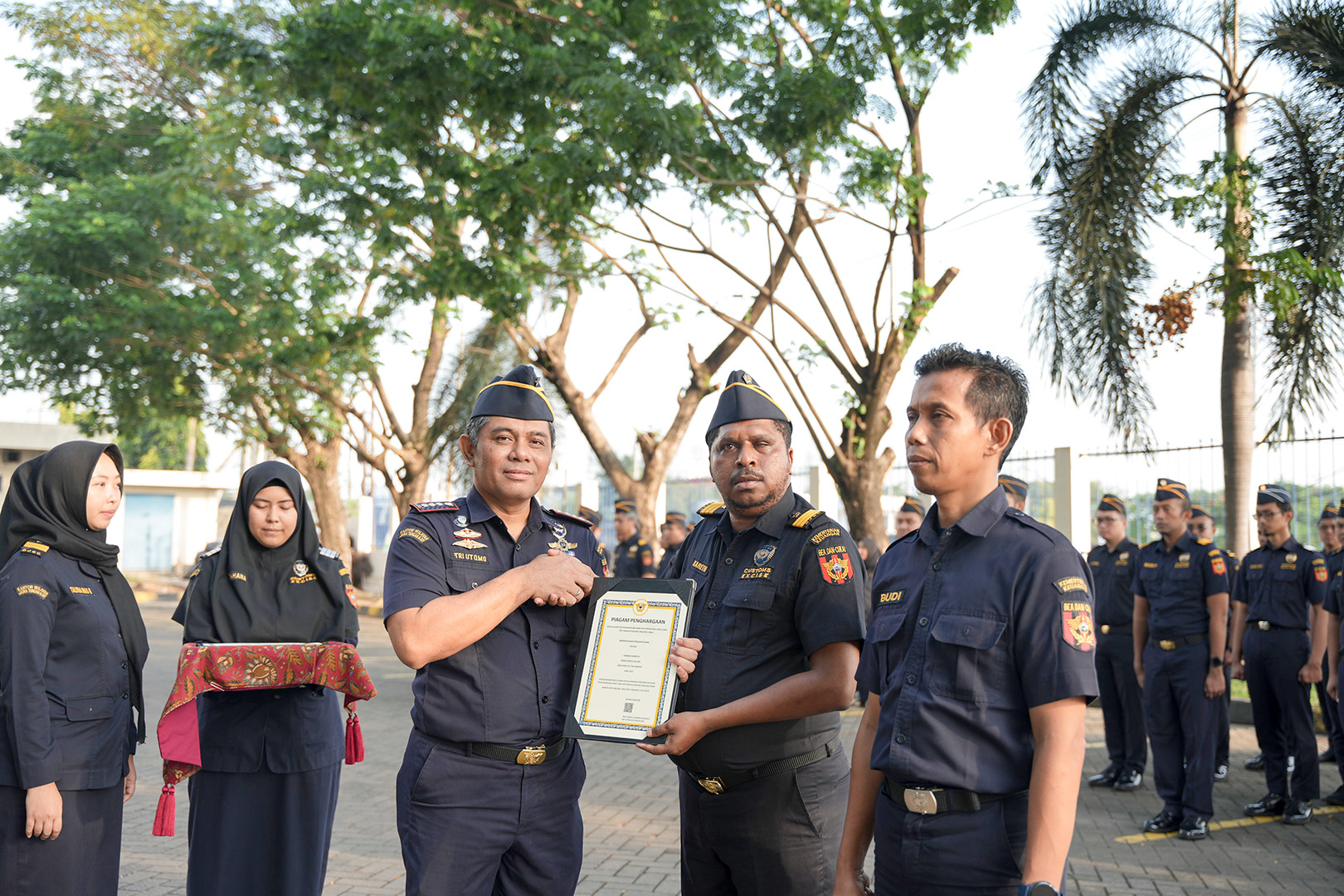 Apel rutin ini juga diisi dengan pembacaan keputusan Kepala Kantor terkait pemberian penghargaan kepada pegawai berprestasi serta penyambutan pejabat baru yang bergabung di lingkungan Bea Cukai Tanjung Emas.