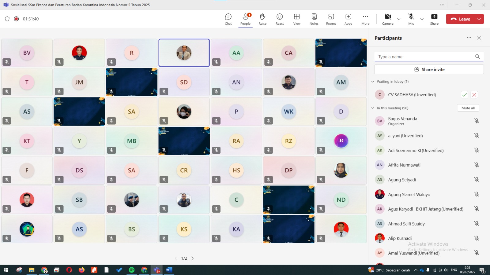 Semarang – Dalam rangka mendukung kelancaran ekspor nasional dan integrasi sistem logistik, Bea Cukai Tanjung Emas, Lembaga Nasional Single Window dan Badan Karantina Jawa Tengah menggelar sosialisasi virtual bertajuk SSm Ekspor dan Peraturan Badan Karantina Indonesia Nomor 5 Tahun 2025 melalui platform Microsoft Teams , Selasa (8/07).