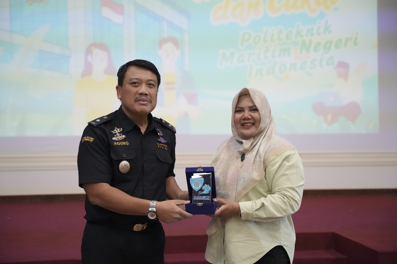 Ketua Jurusan Bisnis Maritim Polimarin, Dr. Novita Widyaningrum, S.ST., M.M.Tr., menyampaikan opening statement mengenai kebutuhan penguatan literasi kepabeanan di lingkungan akademik. Usai penyerahan plakat sebagai simbol kolaborasi kedua institusi, sesi materi dibawakan oleh Ariestianto Juang Wibowo yang memaparkan profil Bea Cukai Tanjung Emas, tugas pengawasan, serta implementasi ketentuan kepabeanan dan cukai di pelabuhan.