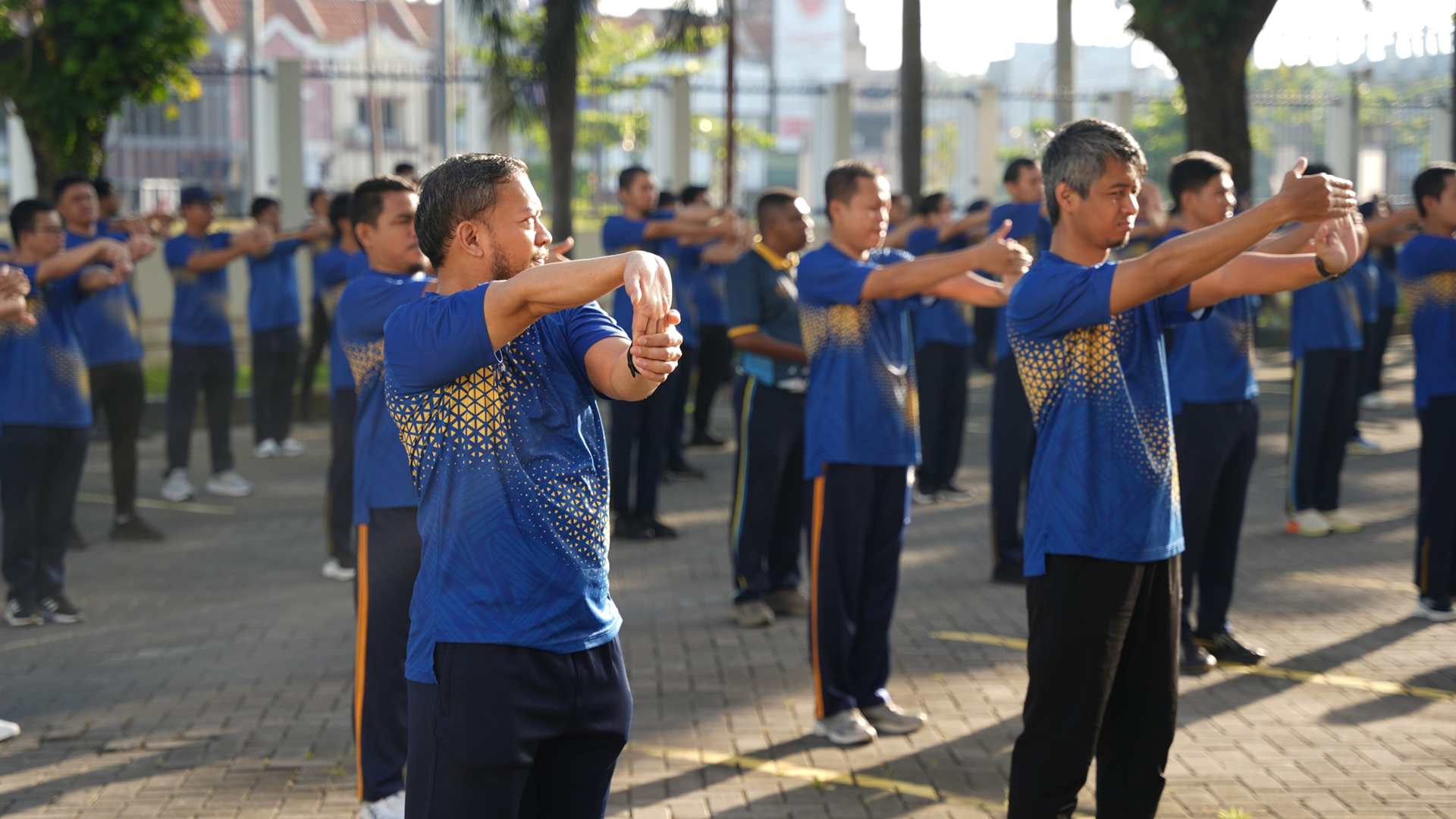 SEMARANG – Seluruh pegawai Kantor Pengawasan dan Pelayanan Bea dan Cukai (KPPBC) Tipe Madya Pabean (TMP) Tanjung Emas melaksanakan kegiatan senam pagi dan kerja bakti di halaman depan gedung kantor, Rabu (29/4/2026). Kegiatan yang dimulai sejak pukul 06.45 WIB ini bertujuan untuk menjaga kesehatan fisik serta memperkuat sinergi antarunit kerja sebagai bagian dari program pembinaan mental dan top down engagement di lingkungan instansi.