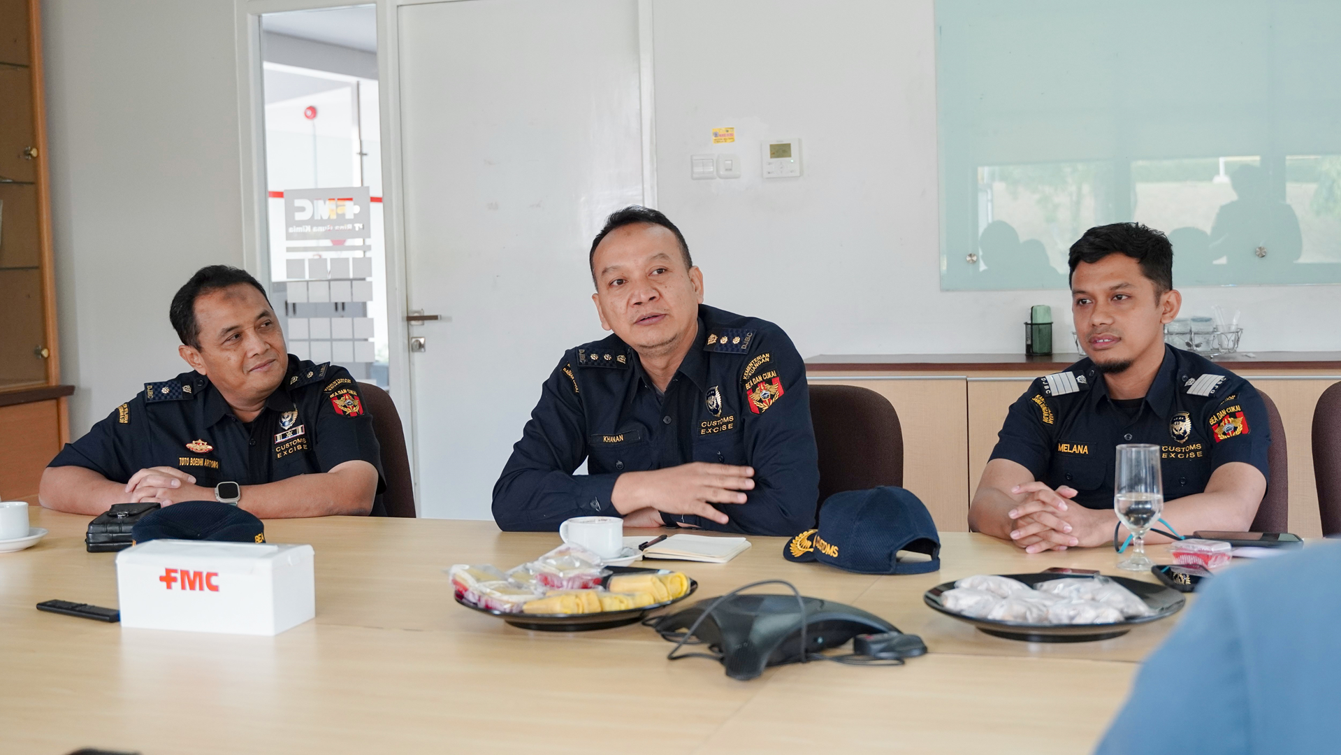 Dalam kunjungan tersebut, beberapa pejabat Bea Cukai hadir, termasuk Kepala Seksi PKC II, Khanan; Kepala Seksi PKC VI, Toto Boedhi Artono, serta dua Pelaksana Pemeriksa. Mereka disambut oleh Yuni, Manajer Logistik PT. Bina Guna Kimia, beserta jajaran manajemen perusahaan.