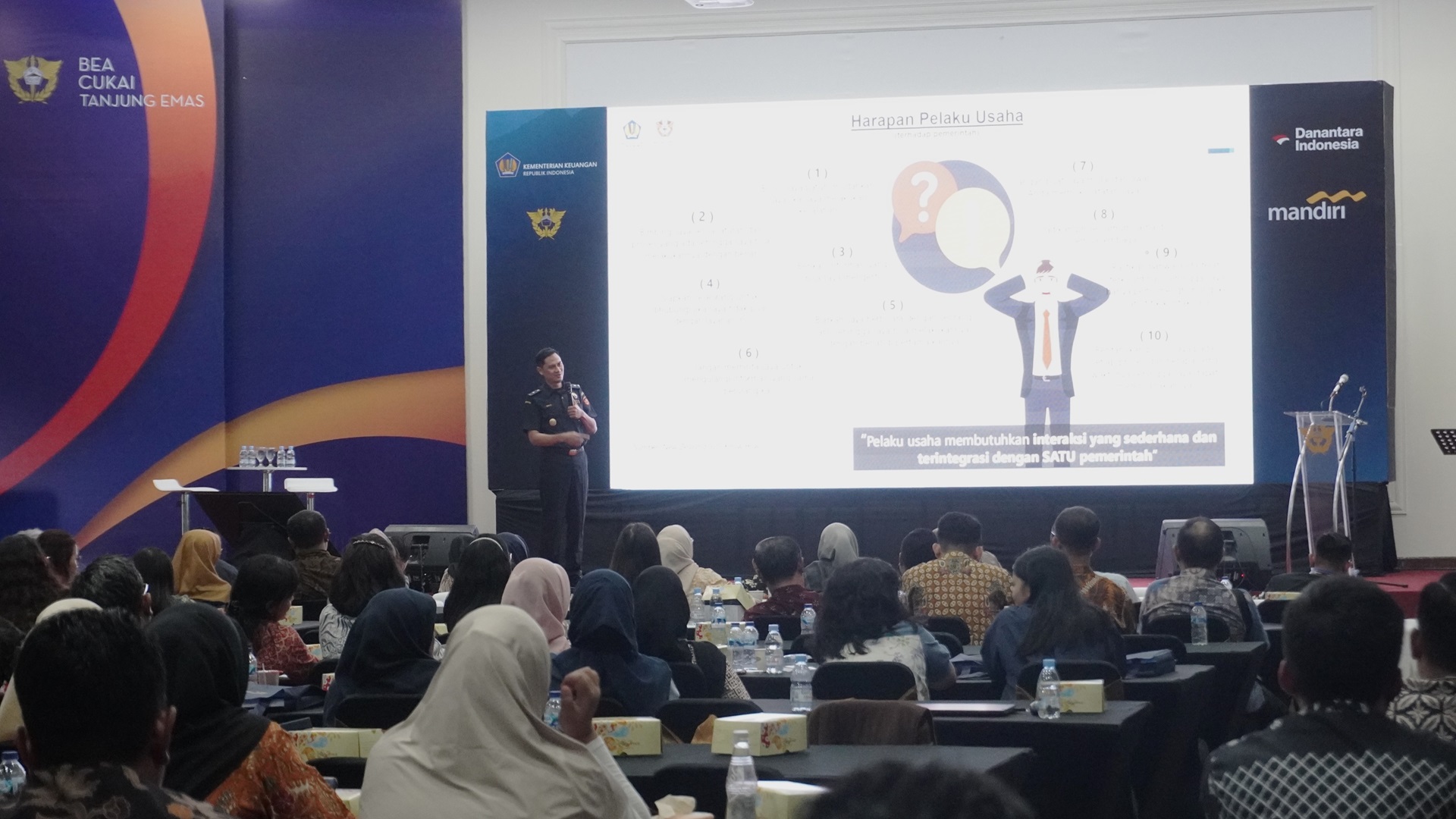 Bea Cukai Tanjung Emas menyelenggarakan sosialisasi kebijakan Devisa Hasil Ekspor Sumber Daya Alam (DHE SDA) dan Single Submission (SSm) Ekspor pada Kamis (22/01) di Aula Lantai 4 KPPBC TMP Tanjung Emas. Acara ini dihadiri oleh perwakilan 100 perusahaan eksportir serta pemangku kepentingan strategis seperti Bank Indonesia dan Balai Karantina. Kegiatan tersebut bertujuan untuk meningkatkan pemahaman dan kepatuhan pelaku usaha terhadap regulasi terbaru guna mendukung ketahanan ekonomi nasional. Forum ini juga menjadi wadah koordinasi untuk memperkenalkan layanan ekspor yang terintegrasi melalui portal Indonesia National Single Window (INSW).