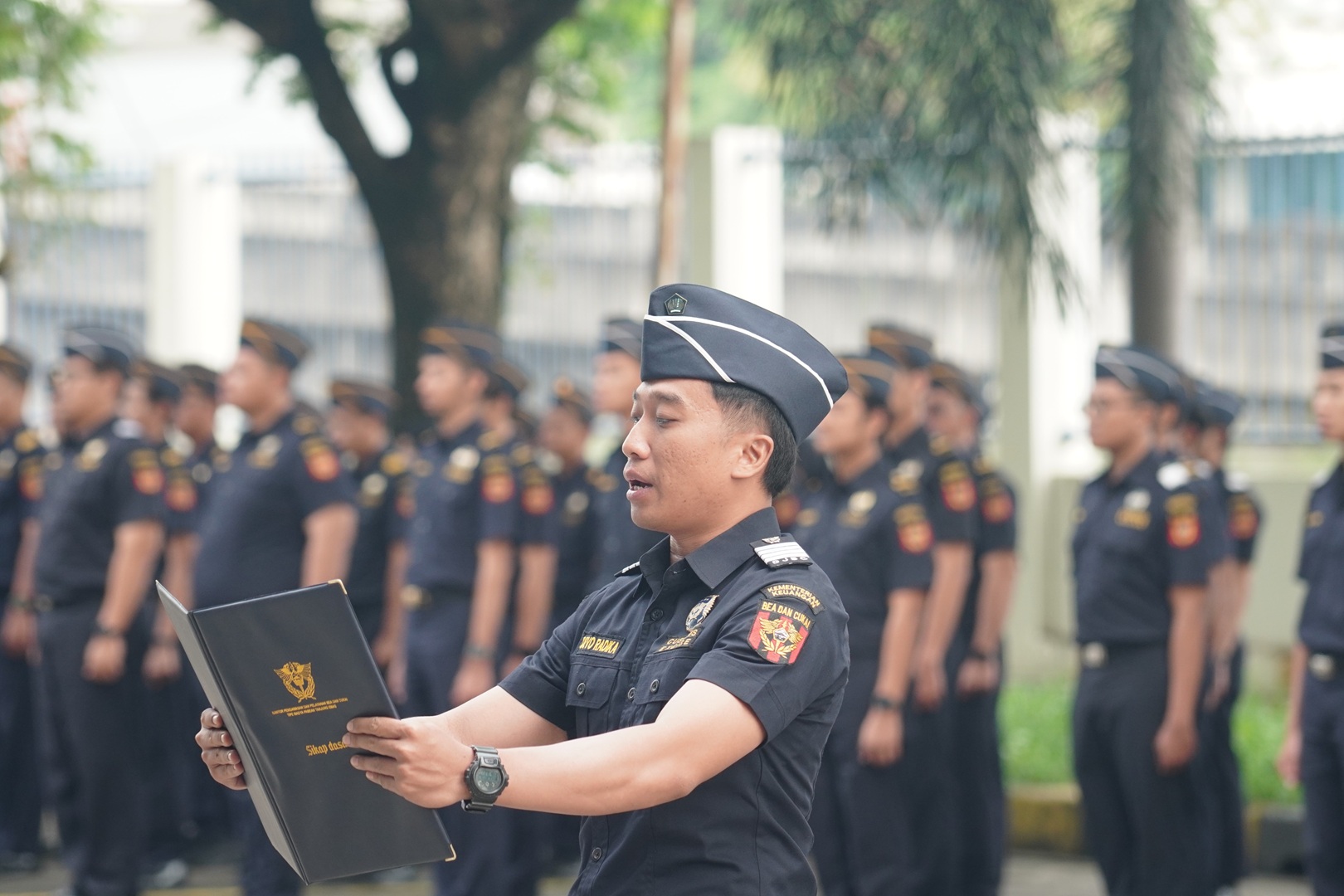 Semarang — Kepala Kantor Bea Cukai Tanjung Emas, Tri Utomo Hendro Wibowo, pimpin apel rutin bulan November yang digelar di halaman kantor. Dalam arahannya, Tri menekankan pentingnya sinergi antar generasi dan penguatan disiplin kerja sebagai kunci menjaga kinerja organisasi yang telah mencapai target 92 persen hingga Oktober 2025. “Artinya, PR kita tinggal dua bulan lagi. Secara hitungan tidak terlalu berat, tapi keberhasilan itu harus dilandasi oleh sikap dasar yang menjadi jiwa setiap pegawai,” ujarnya. Tri juga mengingatkan agar seluruh pegawai menghayati dan mengamalkan Sikap Dasar DPD Bea dan Cukai tanpa sekadar menghafal, melainkan menjadikannya bagian dari perilaku sehari-hari.